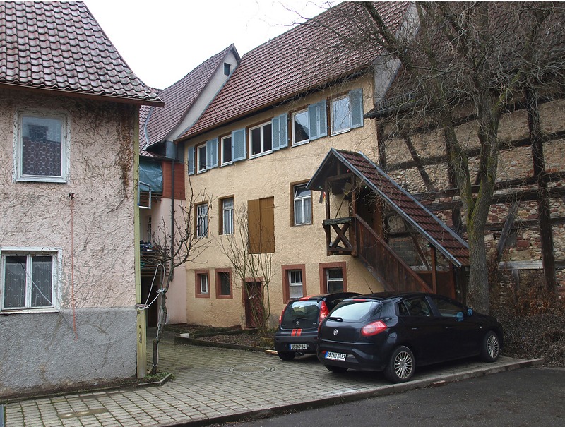 Der Baukomplex liegt an der Nahtstelle zwischen der Ummauerung der Kernstadt und der Renninger Vorstadt und somit im einstigen vorgelagerten Grabenbereich der Kernstadt, der möglicherweise noch für einen längeren Zeitraum als Teil der Stadtbefestigung bzw. als Restfläche bestehen blieb. Dies könnte der Grund für die späte Bebauung gewesen sein.