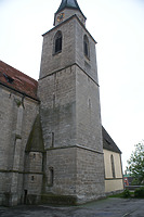 Chorseitturmkirche; im heutigen Zustand stattliche Saalkirche mit eingezogenem, polygonal geschlossenem Langchor und nördl. Chorseitturm.