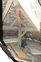 Auf diesen Winkelbau bezieht sich das um 1868 errichtete Dachwerk, das sich mit seinen drei Kammern bis zum Kamin und dem dort anzutreffenden Niveauversprung erstreckt (Grundriss Dachwerk).