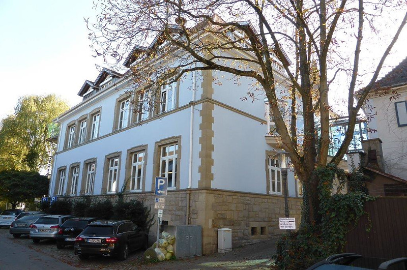 Mit seiner Westseite traufständig zur Basler Straße ausgerichtet, besitzt dieses im Unterbau zwei Nutzungsebenen. Hinter dem Gebäude ist ein kleiner, die Gebäudelänge nicht überschreitender Hofraum ausgewiesen. Seine rückwärtige Abgrenzung erfolgt durch einen Geländeversprung, der durch verschiedene Mauerzüge gefasst ist. Ein ehemals im Hofraum, rechtwinklig am Hauptgebäude ansetzendes Nebengebäude ist bis auf den Ostgiebel abgebrochen.
