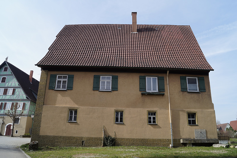 Laut der dendrochronologischen Untersuchung wurde das Gebäude 1538 (d) erbaut. Aus dem Jahr 1623 ist die Erwähnung als Besitz der Fürstpropstei Ellwangen/Jagst bekannt. Der vor 1829 erfolgte Anbau eines rückwärtigen Holzschuppens wurde 2016 abgetragen. Mit dem Übergang des Gebäudes an den Metzger Georg Schirle im Jahr 1831 wurde das Gebäude mit einer Schlachtbank ausgestattet. 1985 erfolgte die Renovierung des Gebäudes.