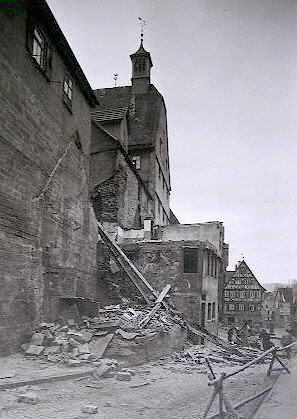 Wolfgang Adam Baaders Witwe besitzt: "Eine Behausung, Keller und Zugehördt (Vorgängergebäude des Hauses Hauptstraße 19), samt einem großen Stall gegenüber (Bereich Hauptstraße 12), worunter ein Werckstatt, in der Vorstatt, zwischen beeden Thoren (des Aipertors) ... 1 3/4 Ruthen Gartten darbey". (a)