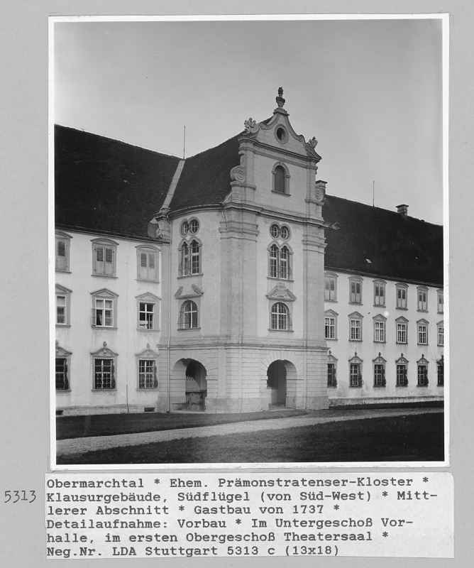 Kloster Obermarchtal - Klausurgebäude, Südflügel (von Süd-West), Mittlerer Abschnitt (Gastbau) / Ehem. Prämonstratenser-Reichsabtei in 89611 Obermarchtal (Bildarchiv, LDA, Rgb. Tübingen)
