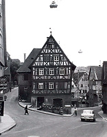 Dreigeschossiges Fachwerkhaus mit profilierten Schwellen (vorkragend) und Brüstungskonsolen, Kopfbau, Erdgeschoss massiv verputzt, Satteldach, zwischen 1569 und 1587 (laut RPS) als Herberge errichtet, spätere Umbauten durch Funktionswandel wahrscheinlich.