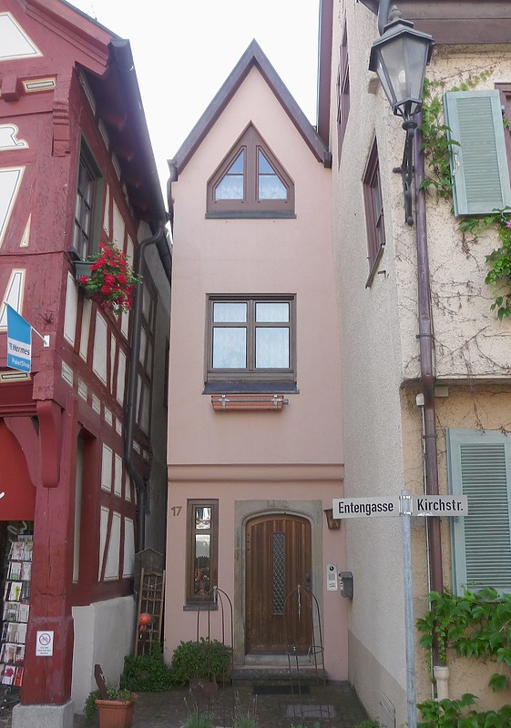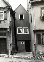 Ehemaliges dreistöckiges Wohnhäuschen, 1981/82 abgebrochen und äußerlich im alten Stil wieder aufgebaut. (a)