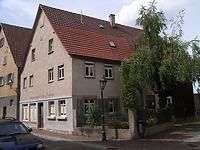 Zweigeschossiges verputztes Fachwerkhaus in Ecklage, Erdgeschoss massiv, Satteldach, 1671 neu errichtet, 1733 Anbau einer Schlosserwerkstatt, spätere Umbauten des 19. Jahrhunderts.