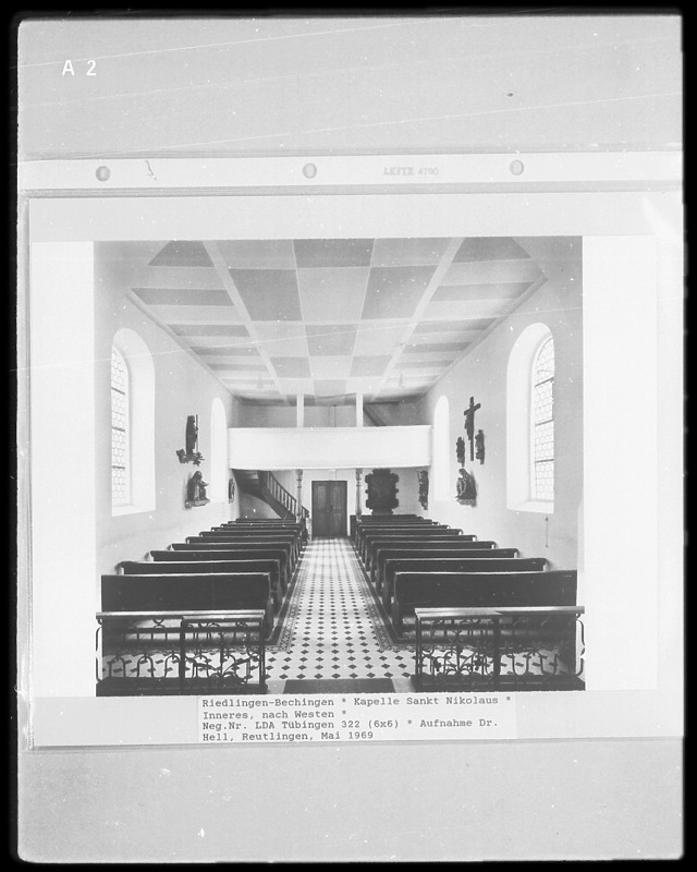 Innenansicht mit Blickrichtung Empore / St. Nikolaus in 88499 Bechingen (1969 - Landesamt für Denkmalpflege Baden-Württemberg, Außenstelle Tübingen)