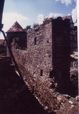 Die Stadtmauer besitzt auf der Außenseite einen Versatz im Fundamentbereich. Ungefähr in der Mitte des heute erhaltenen Mauerteils verspringt dieser Versatz um ca. 80 cm. Dies dürfte die Knickstelle des älteren Mauerverlaufs markieren. Die aufgehenden Teile der Stadtmauer mit den Schießscharten stammen ausschließlich aus der jüngeren Phase.
