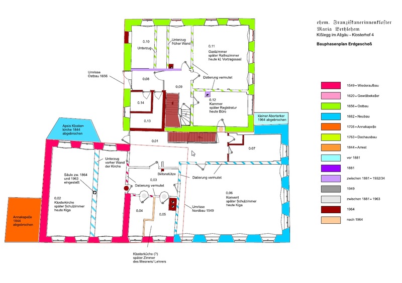 Verlust von bauzeitlicher Substanz durch Saaleinbau 1964 im Obergeschoß, ansonsten wurde an der Aufteilung der Räume über die Jahrhunderte weniger geändert, als es zunächst den Anschein hat.