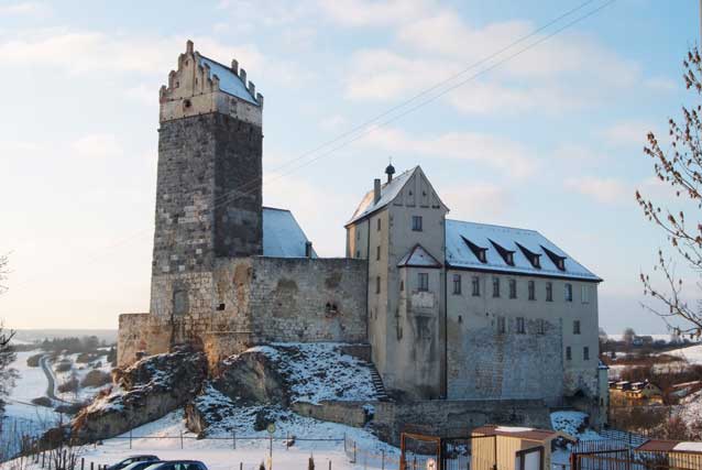 Errichtung einer Turmburg auf der Spitze eines freistehenden Felsens. Von dieser Turmburg haben sich die zwei Sockelgeschosse im unteren Teil des Bergfrieds erhalten. Ein weiterer Fachwerkstock wird vermutet.