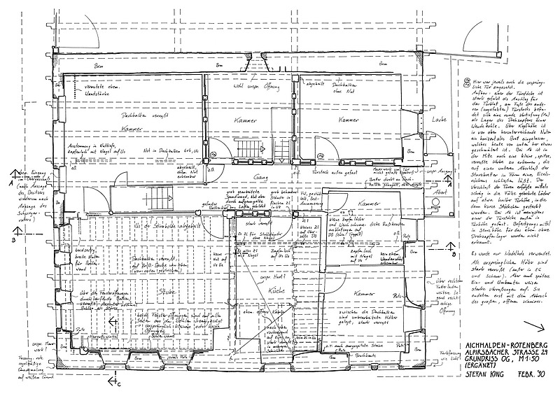 Der Zugang erfolgte ursprünglich über eine Außentreppe ins Obergeschoss.