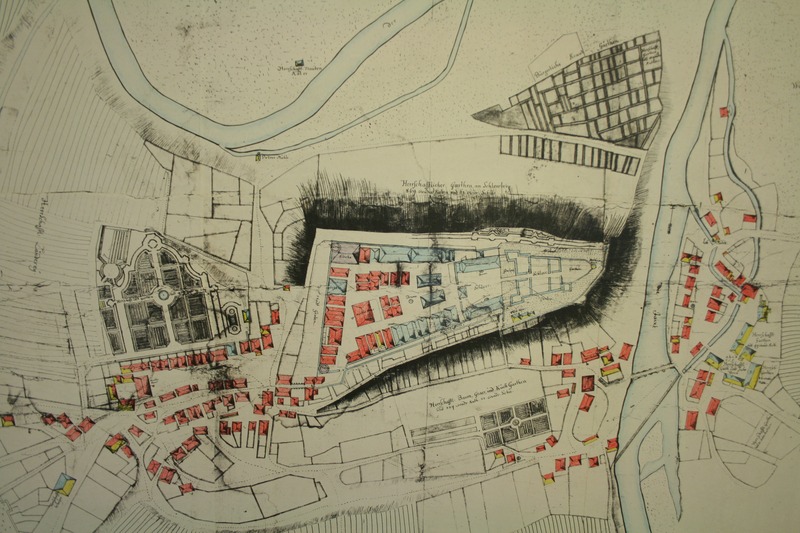 Einen Eindruck von Schloss und Stadt zu Beginn des achtzehnten Jahrhunderts, vor der letzten großen und weitreichenden Baumaßnahem, vermag neben dem Fassadenriss von Leopoldo Retti (HZAN, GA 115 III/368) das Titelblatt einer Leichenpredigt aus dem Jahr 1706 (HZAN, GA 115 III/23), ein Ölgemälde, entstanden um 1745, und die Rötelzeichnung von Johann Justus Preißler zu geben.