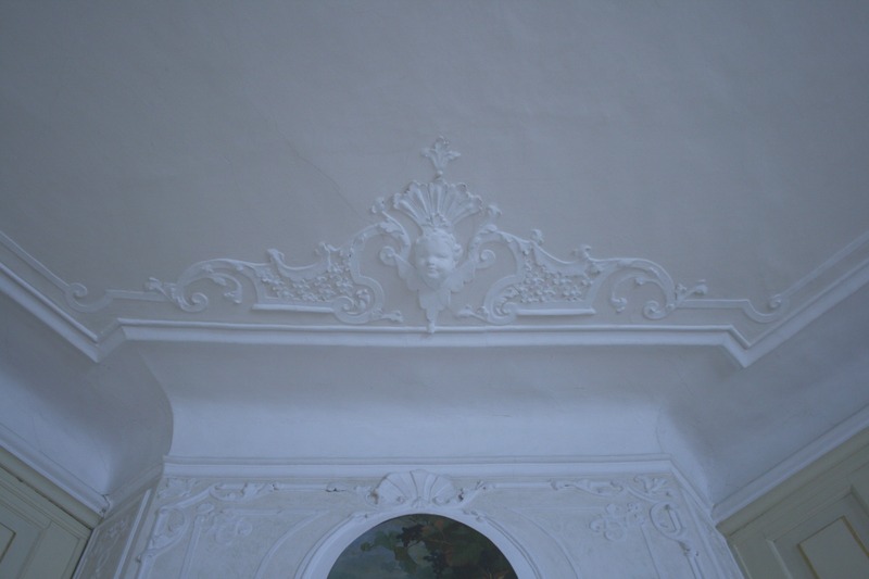 Dennoch bedingte die langjährige Nutzung des Schlosses zunächst als Internat und Schule, mitunter als Flüchtlingslager und letztlich als Altenheim spätestens nach dem Zweiten Weltkrieg tiefgreifende Umbaumaßnahmen. Für die Flügelbauten bedeutete das in erster Linie die Abkehr von der bis weit ins zwanzigste Jahrhundert hinein überkommenen bauzeitlichen Binnengliederung, und, damit einhergehend, der Verlust der originären Ausstattung. Gemeint sind Böden, Kamine und Öfen, vor allem aber das Stuckwerk, dessen heute noch vorhandener Bestand, aus der Bauzeit und der Zeit des Biedermeier (gk, s), immerhin zwei historische Bauphasen zu belegen vermögen.
