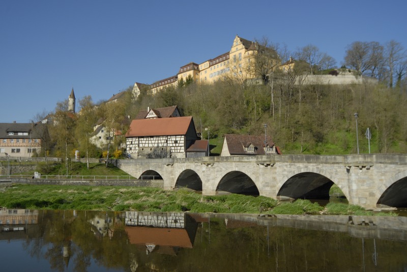 Kirchberg an der Jagst, von Merian als ein „Städtlein und Schloß / zwischen Rotenburg und Schwäbischen-Halle/ von jedem Ort dritthalb Meilen gelegen […]“ (Matthäus Merian (Hg.): Topographia Franconiae, Frankfurt am Main 1648, 51) beschrieben, liegt in etwa auf halbem Weg zwischen den beiden ehemaligen Reichsstädten, der heutigen Kreisstadt Schwäbisch Hall und Rothenburg ob der Tauber (Landkreis Ansbach). Auf dem Plateau eines Höhenrückens, oberhalb einer Jagstfurt, wo die Hohenloher auf die Haller Ebene trifft, befindet sich die Stadt Kirchberg, ein ehemaliger Burgweiler. Die zugehörige Höhenburg, die man zugunsten des heutigen Schlosses frühzeitig schleifte, diente einst, gemeinsam mit den benachbarten Burgen Sulz (1525 zerstört) und Hornberg, zur Sicherung der genannten Furt und der durch die sogenannte Steinbachklinge führenden reichsstädtischen Transitstraße.