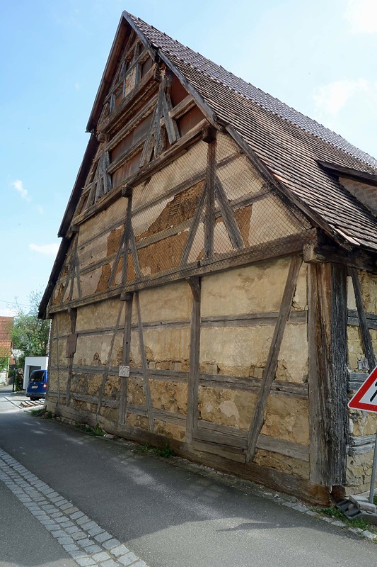 Insgesamt fällt am Gebäude die inhomogene Konstruktion auf. Neben die „altmodischen“ Konstruktionsdetails wie die Steigblattstreben im Windverband des 1.DG, die Art der Auskragung des Nordgiebels ohne Stichgebälk nur über die Rähmköpfe oder die längsgebundenen Sparrenfußpunkte in der mittleren Querzone treten gleichzeitig durchaus „moderne“ Konstruktionsdetails wie die Sparrenfußpunkte mit Stichgebälk und Wechselbalken in den äußeren Querzonen. Dies zeugt von einem sehr experimentellen und individuellen Fachwerkgefüge.