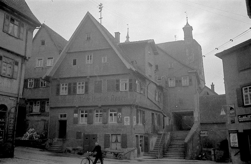 Das verkehrsgünstig direkt unterhalb des ehemaligen Aiperturms und „rechten“ Stadttores befindliche Gasthaus gehörte nach dem Häuserbuch ab 1700 Metzgern und Wirten. Das heutige Hinterhaus wurde 1784 als Scheune errichtet und 1888 zum Wohnhaus umgebaut.