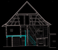 Im Obergeschoss wird die rückseitige, vormals in Fachwerk errichtete Außenwand im Bereich der Ökonomie (Mühlenteil, Tenne und Stallzone) massiv erneuert.
