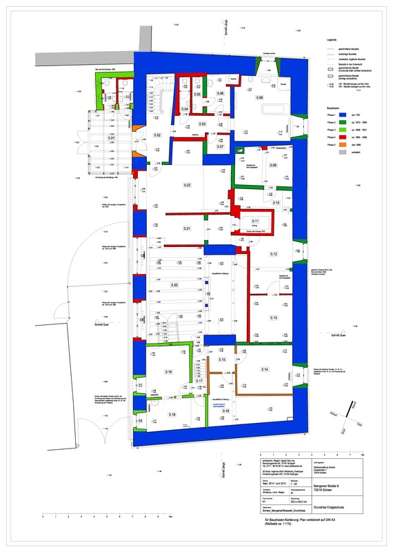 Zum Baumaterial der Obergeschosswände lässt sich ohne Eingriff in die Substanz keine Aussagen treffen.
