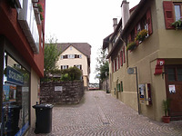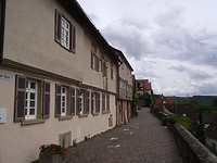 Der Quergassenabschnitt ist Teil des Rippensystems der Gründungsstadt, die Gasse an der Mauer der Rest des einst zur Bedienung der Stadtbefestigung wohl komplett umlaufenden Wegesystems an der inneren Stadtmauer. (a)