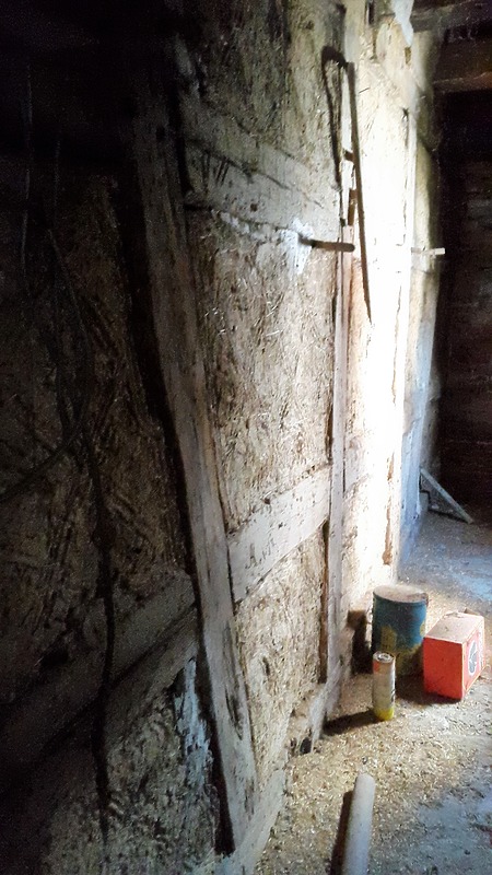 Die Decken EG/ OG und OG/ DG sind zwar vollständig verkleidet, aber die vorhandenen Durchbiegungen und Verformungen lassen weitere fäulnisgeschädigte bzw. schädlingsbefallene Hölzer vermuten (wenn auch weniger stark ausgeprägt als in der benachbarten Haushälfte).
