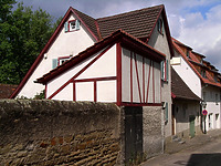 Eingeschossiges verputztes Fachwerkhaus in Hanglage, Satteldach mit Zwerchhaus, zur Mühlgasse hin hohes massives und verputztes Kellergeschoss, Traufseite zur Mühlgasse unverputzt fachwerksichtig, wurde Ende des 18. Jahrhundert errichtet.