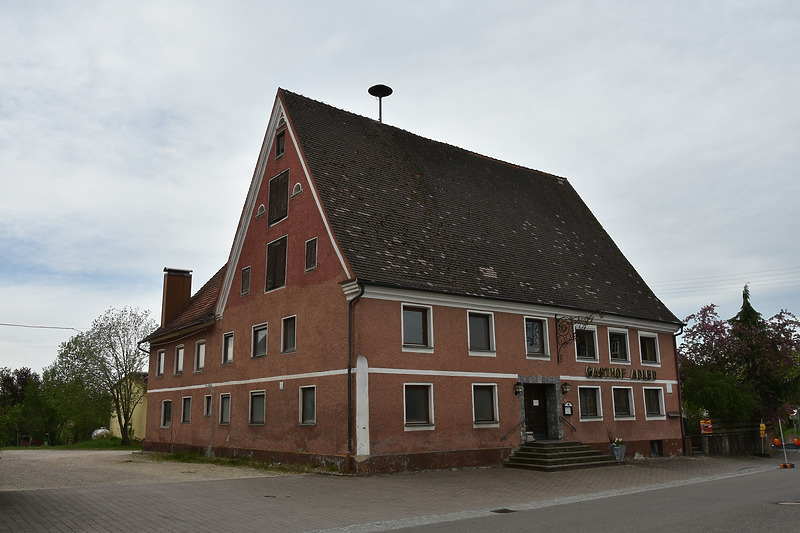 Das um 1734 (d) errichtete Gasthaus Adler in Hürbel wurde im Laufe seines über 280-jährigen Bestehens in Erd- und Obergeschoss umfangreich verändert und durch die südlichen Anbauten nach und nach erweitert.