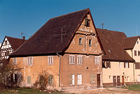 Das stattliche, laut Giebelinschrift 1627 errichtete ländliche Wohnhaus liegt am Nordrand des Dorfes, abgerückt von den umgebenden Straßen. Ursprünglich war es Teil eines größeren landwirtschaftlichen Anwesens im unteren Dorf, von dem auch das Ökonomiegebäude mit Stall und Gewölbekeller erhalten blieb.