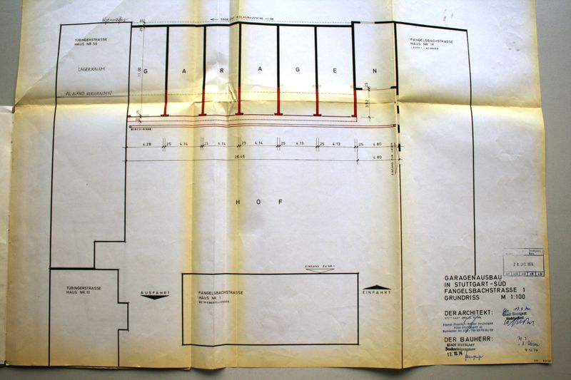 Auf Grundlage des beiligenden Eingabeplans, geändert im Okt. 1901, erfolgte der Bau des Riegels und des diesen im Osten begrenzenden, zweigeschossigen Hauses entlang der Tübinger Straße.