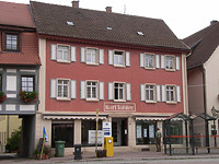 Dreigeschossiges verputztes Fachwerkhaus, Erdgeschoss mit moderner Eckquaderung und Ladeneinbau, aufgeputzte Ecklisenen, Satteldach, 1774 errichtet; eingeschossiges Fachwerkhinterhaus mit Satteldach, 1802 errichtet.