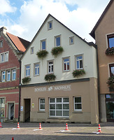 Es ist anzunehmen, dass das in bevorzugter Lage direkt am Marktplatz gelegene Grundstück in unmittelbarer Nähe des Rathauses schon in früher Zeit der Stadtgeschichte bebaut war. Eine Bebauung lässt sich aber erstmals Mitte des 17. Jahrhunderts anhand der ältesten im Stadtarchiv erhaltenen Steuerbücher nachweisen, da sie in den älteren Lagerbüchern nicht verzeichnet ist. Bei dem genannten Haus handelt es sich zunächst um ein Vorgängergebäude: Das heutige stammt aus dem Jahr 1891. (a)