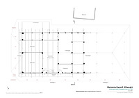 Das Dachwerk beruht auf einem regelmäßigen Ständerraster, das die Grundfläche des gesamten Hofes in acht Quer- und vier Längszonen gliedert. Während im Dach das Raster konsequent durchgehalten wurde, hat man es für die beiden Vollgeschosse innerhalb des Wohnteils Manipulationen unterworfen, um es der Raumaufteilung anzupassen. Im Wesentlichen wurden jeweils die ersten beiden Quer- und Längszonen im Bereich der Hauptecke zusammengelegt, um einen geräumigen Eckraum für die Stube zu schaffen.
