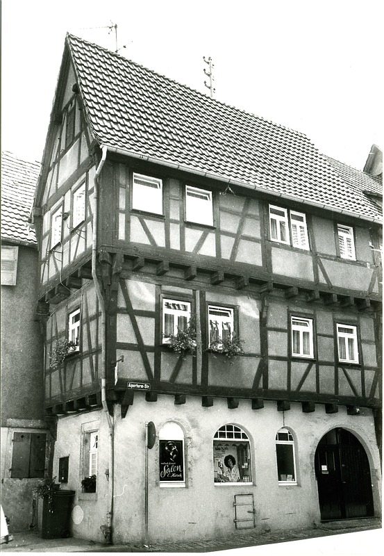 Nach Olga Duschek ("Besigheimer Chronik") soll sich noch vor dem 2. Weltkrieg an einem abgerissenen Balken des Hauses Aiperturmstraße die Jahreszahl "1435" befunden haben, was möglicherweise ein Hinweis auf das Baujahr gewesen sein könnte. Jedenfalls gehört das Gebäude mit zur ältesten Bausubstanz im Besigheimer Stadtkern und kann auch von der Fachwerkskonstruktion her ins 15. Jahrhundert datiert werden.