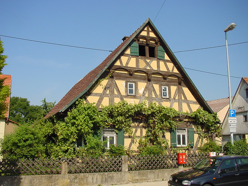 Sein giebelständig sich mit Zierfachwerk zur Straße hin präsentierendes Wohnhaus beinhaltet noch viel von seinem ursprünglichen Gefüge. Ins Auge springen vor allem die ungewöhnlichen in Relief gearbeiteten Segmentbögen an den jeweiligen, betont kräftigen Dachstockschwellen. Von Balkenkopf zu Balkenkopf der vorkragenden Stichbalken gespannt ergeben sie einen schmucken Bogenfries.