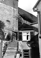 Ehemaliges zweistöckiges Stallgebäude an der Stadtmauer, dazu Backofen und Remise weiter südlich davon entlang der Stadtmauer; der Stall gehörte als Nebengebäude zur gegenüberliegenden Mühle (Mühlgasse 4). (a)