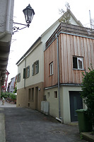 Zweigeschossiges Wohnhaus mit Kniestock, Ecklage zur Zufahrt „Deutscher Hof“, massiv verputzt, Ladeneinbau im Erdgeschoss, 1873 erbaut.