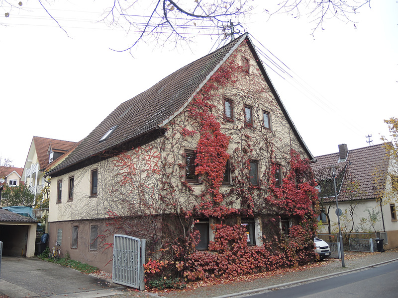 Bei dem Wohnhaus handelt es sich um ein giebelständiges, zweigeschossiges, verputztes Fachwerkgebäude mit massiv gemauerter Erdgeschosszone. Das Obergeschoss stößt leicht