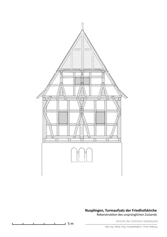 Dendrochronologische Altersbestimmungen durch das Jahrringlabor Hofmann, Nürtingen, von 1998 und 2005 datieren zwei Gebälklagen im Turm 1273/74 und konnten die Errichtung des hölzernen Aufsatzes mit Glockenstuhl in den Zeitraum zwischen 1485 und 1489 eingrenzen.