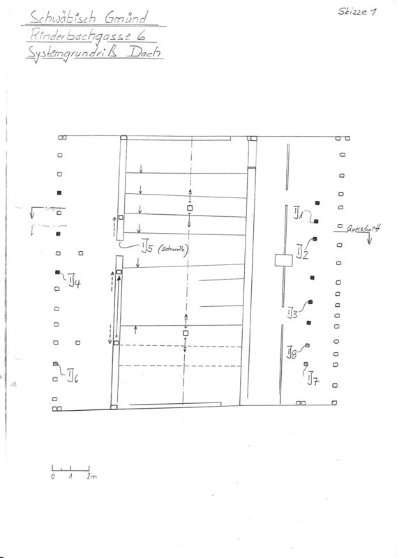 • Teil einer dendrochronologischen Reihenuntersuchung der Dachwerke (vgl. Dokumentation Schwäbisch Gmünd, Stadt)