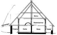 Auf der rückwärtigen Längsseite führt über dem Wirtschaftteil eine aufgeschüttete Erdrampe durch das „Einfahrtshäusle“ in den Dachraum.