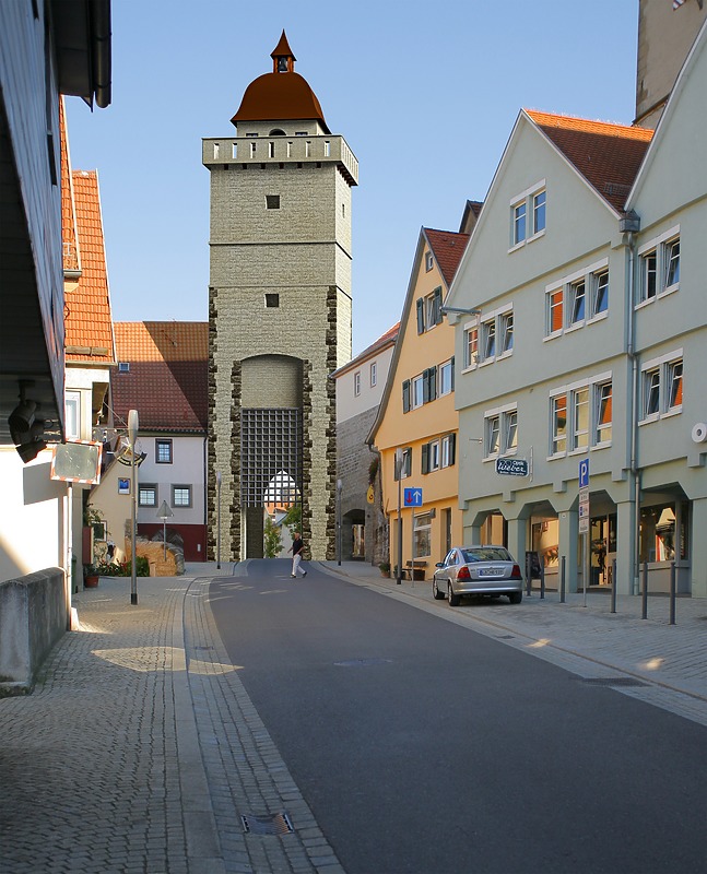 Ehemaliger Aiperturm: Ein dreigeschossiger Torturm mit Durchfahrt unter dem Turm und Türmerwohnung. Der Torturm wurde auch "Aipertor" oder "Rechtes Tor" (eigentliches Tor) genannt und sicherte einst an der inneren Stadtmauer den Eingang in die Kernstadt.