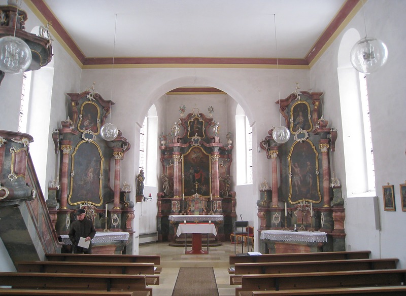 Einschiffiges, flachgedecktes Langhaus mit eingezogenem Polygonalchor.