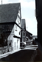 Zweigeschossiger verputzter Fachwerkbau, Erdgeschoss massiv, profilierte Schwellen und Volluten-Firstkonsole, Satteldach, 16./17. Jahrhundert, 1993 Änderungen an der Fassade; erhaltenswert der zweigeschossige Anbau an der Traufseite mit Satteldach, 1876 mit Stall errichtet und später aufgestockt.