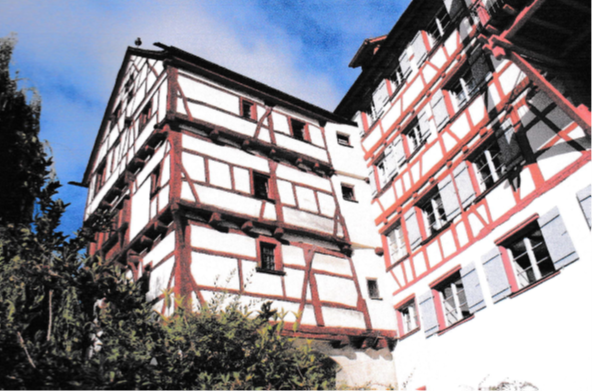 Erbauung des Wohnturms als Fachwerkkonstruktion.