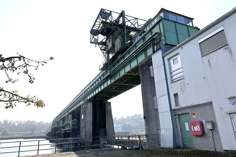 Der Wehrkran wurde im Jahr 1931 bei der Gesellschaft der Ludwig von Roll´schen Eisenwerke, Gerlafingen, Werk Giesserei Bern, in Auftrag gegeben. Im Angebot der L. von Roll´schen Eisenwerke war eine Lieferung des Kranes im Sommer 1932 vorgesehen. Auf das Angebot erfolgte die Bestellung durch die Rheinkraftwerk Albbruck-Dogern AG am 9. Dezember 1931. Bereits im August 1930 begannen die Bauarbeiten am Stauwehr und am Einlaufbauwerk. Die Maschinen und die Nebenanlagen wurden ab Juli 1932 montiert. Die ersten Maschinengruppen konnten dann im September 1933 in Betrieb genommen werden, die gesamte Anlage lief ab dem 1. Januar 1934. Der Kran war bereits vor Fertigstellung der Wehrbrücke in Betrieb genommen, wohl sicherlich um die Bauarbeiten zu unterstützen.