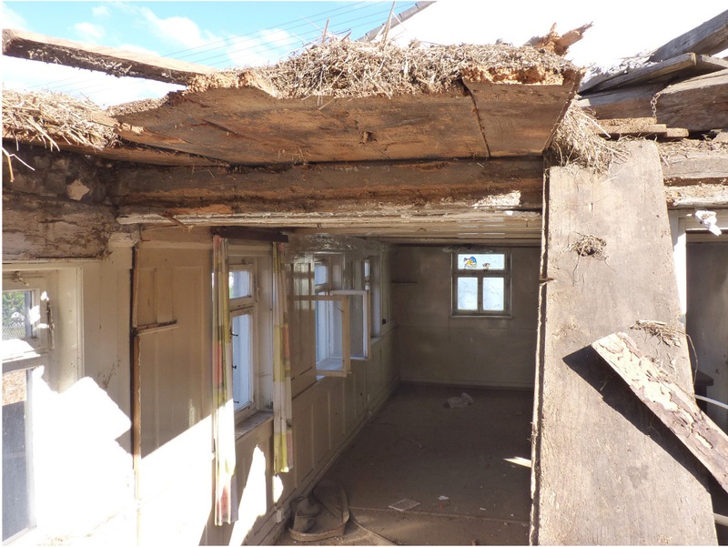 In den Aufnahmen ist ein Balken zu erkennen, der über die ursprüngliche Flucht der Rücktraufe weit
