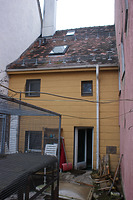 Erbauung des Gebäudes spätestens im 14. Jh. Davon ist noch die nördliche Brandwand erhalten.