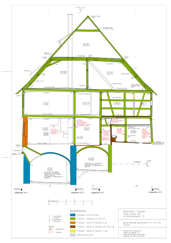 - Im südseitigen Gewölbekeller Einbau der etwa mittig gelegenen Fachwerkwand zur Trennung der Besitzhälften.