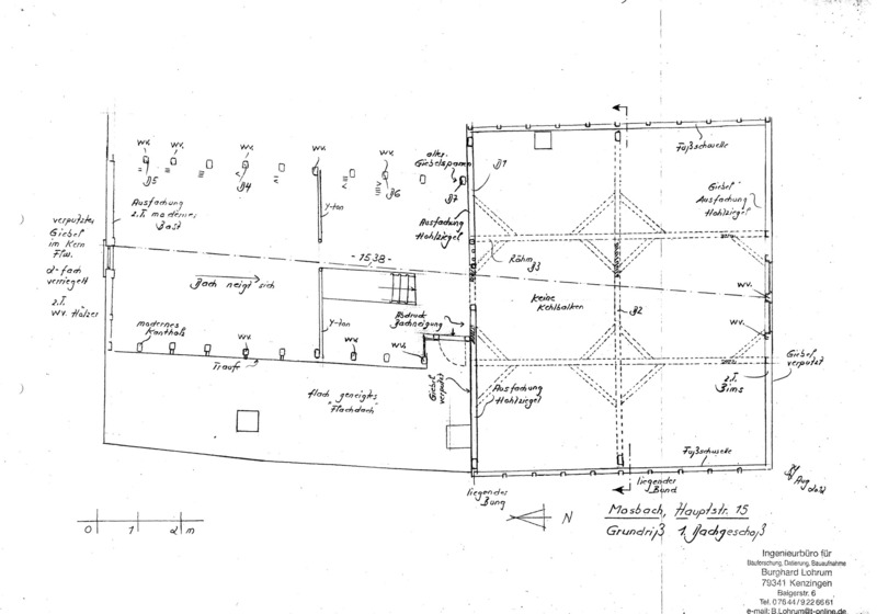 Das untersuchte, sich weit in die Parzellentiefe entwickelnde Hauptgebäude setzt sich in seinem Kern offenkundig aus zwei älteren Bauteilen zusammen. Im angetroffenen Zustand mehr oder weniger eine Einheit bildend, steht der Südgiebel an der Hauptstraße, während am nördlichen Hofgiebel das heutige und gegenüber dem Hauptgebäude auch deutlich schmälere Rückgebäude (wohl aus dem 19, Jahrundert) ansetzt.