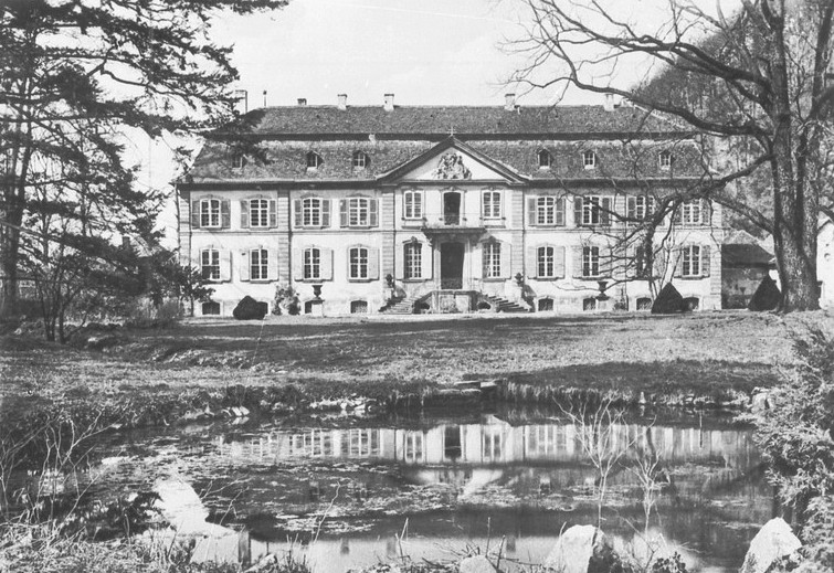Ab 1748 im Auftrag von Freiherr Ferdinand Sebastian von Sickingen-Hohenberg nach einem Entwurf von Johann Jacob Fechter errichtet (a).