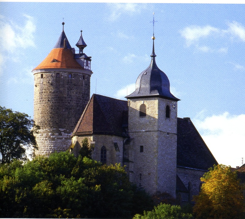 Evangelische Stadtkirche, ehemaliges Patrozinium St. Cyriakus: die Zuordnung des hl. Cyriakus als Schutzpatron wird 1484 überliefert. Dieses Patrozinium weist auf einen Vorgängerbau im 8. Jahrhundert hin, als sich die Sprengelgrenzen der Diözesen Worms, Speyer und Würzburg noch nicht verfestigt hatten und das Bistum Worms sich in das Neckargebiet erstreckte. Die Kirche könnte ihrer Lage nach aus einer zur Oberen Burg gehörigen Kapelle hervorgegangen sein.
